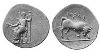 Ο Δίας ένθρονος, Νόμισμα Πραισού, 500 π.Χ. |